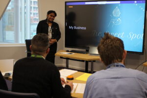 Amaan Hussain, a second year BTEC Business student, brought his A-game, presenting his dessert business concept. Amaan shared,